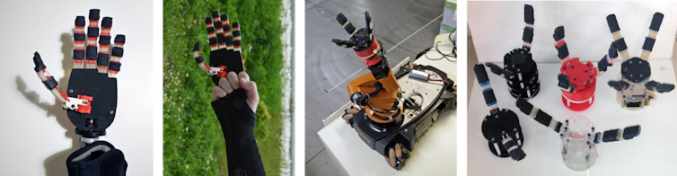 People from all over the world who are connected online and have access to local manufacturing machines (from 3D printing and CNC machines to low-tech crafts and tools) can, ideally with the help of an expert, manufacture a customised hand. This the case of the OpenBionics project, which produces designs for robotic and bionic devices.