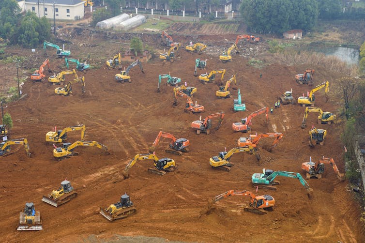 A spectacle of lightning-fast activity similar to what occurred during the SARS epidemic was repeated: Construction crews broke ground on Jan. 24 on a 1,000-bed hospital that is expected to be in use by Feb. 3; another will open shortly after.