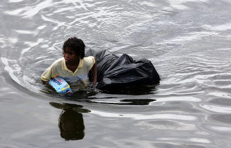 The narratives surrounding Hurricane Katrina also reinforced racist stereotypes and tropes through media coverage on survivors based on their race: Black survivors were routinely characterized as “looting” in the aftermath of the storm, while white survivors were described as “finding supplies.”