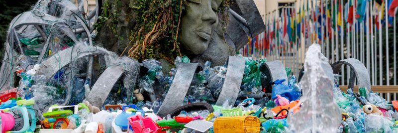 Climate governance is a mess. Orjan Ellingvag / Alamy (Art: ‘The Thinker’s Burden’, by environmental artist Benjamin von Wong outside the UN headquarters)